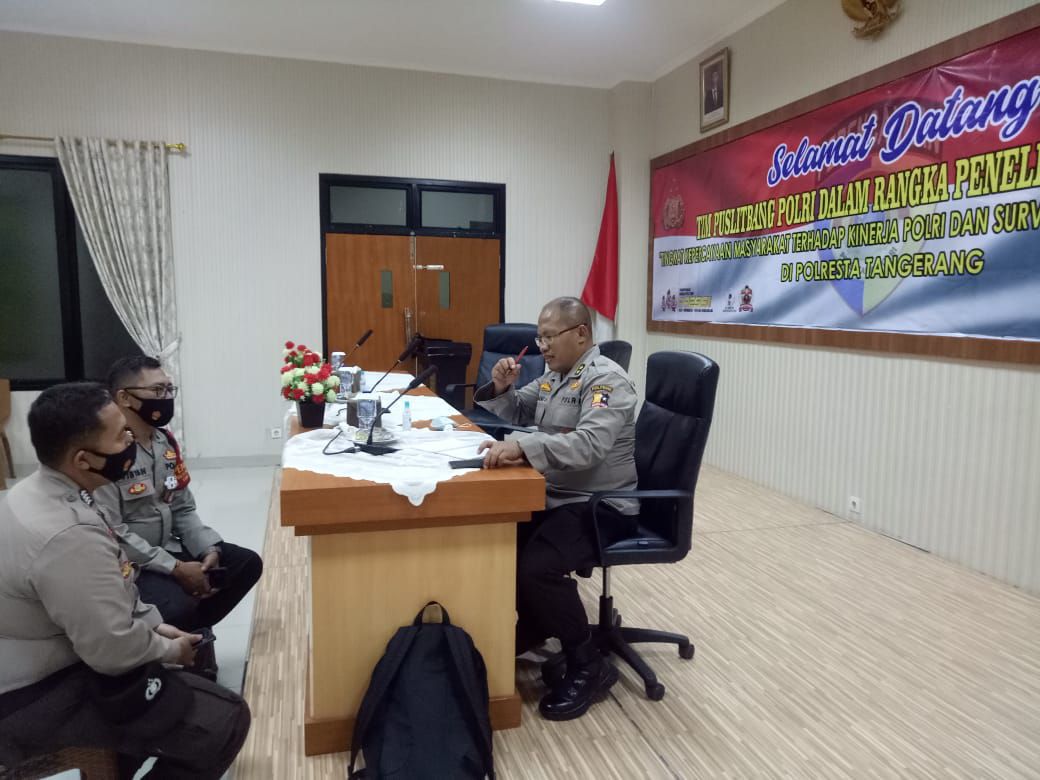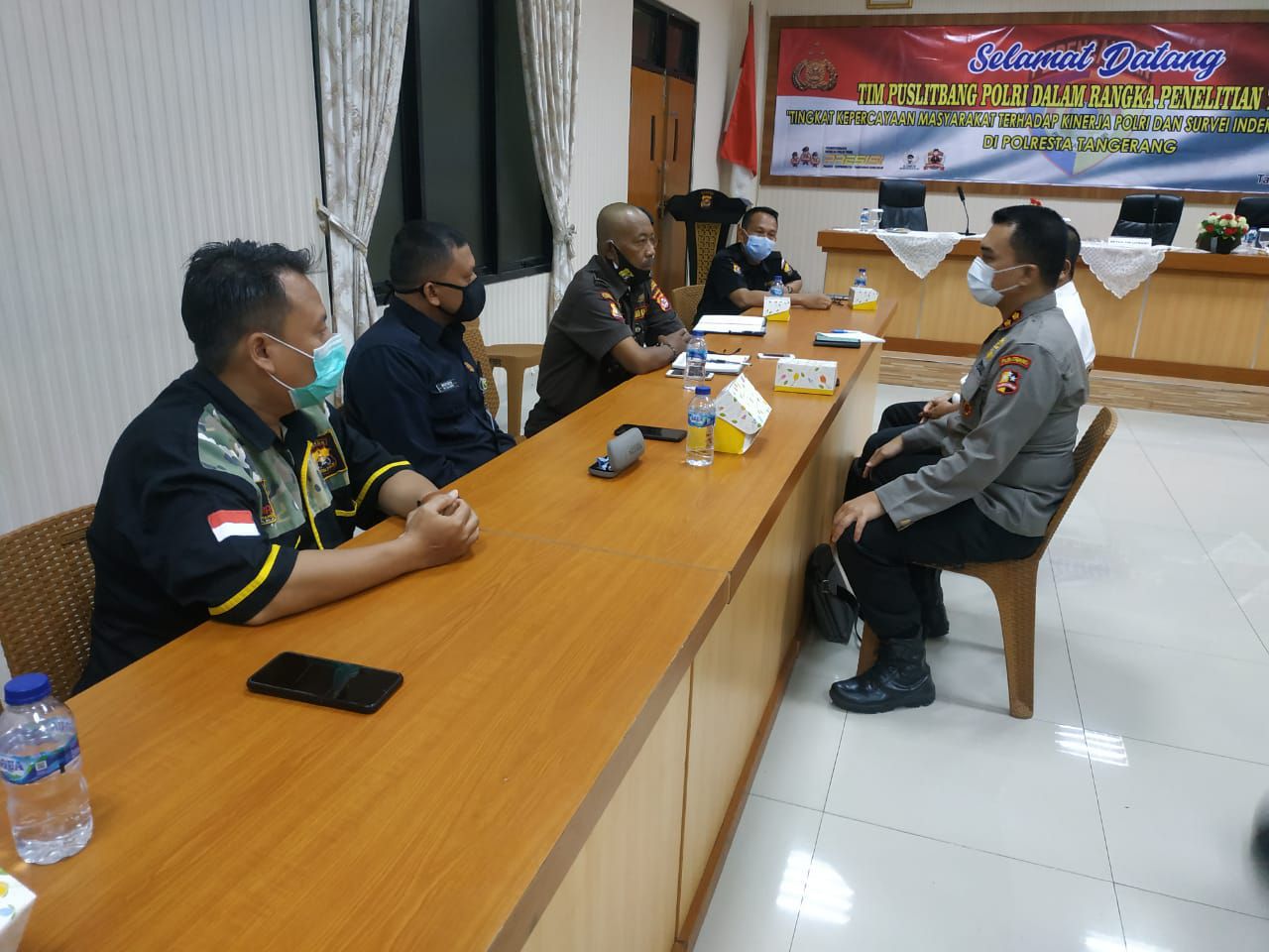 Puslitbang.Polri.go.id - Bid Gasopsnal Pusat Penelitian dan Pengembangan Polri melaksanakan penelitian "Tingkat Kepercayaan Masyarakat Terhadap Kinerja Polri" di Polresta Tangerang yang dipimpin Kabidgasopsnal Kombes Pol. Drs. Azis Saputra, Senin (15/2).