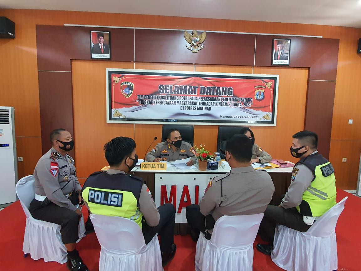 Puslitbang.Polri.go.id - Bid Gasopsnal Pusat Penelitian dan Pengembangan Polri melaksanakan penelitian "Tingkat Kepercayaan Masyarakat Terhadap Kinerja Polri" di Polres Malinau yang dipimpin Analis Puslitbang Polri Kombes Pol. Saefudin Mohamad, S.I.K., Selasa (23/2).