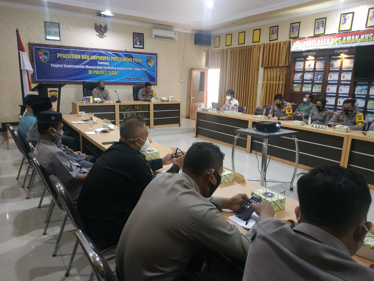 Puslitbang.Polri.go.id - Bid Gasopsnal Pusat Penelitian dan Pengembangan Polri melaksanakan penelitian "Tingkat Kepercayaan Masyarakat Terhadap Kinerja Polri" di Polres Tegal yang dipimpin Kasubbid Gasus AKBP Ir. Dadang Sutrisno, Rabu (10/2).