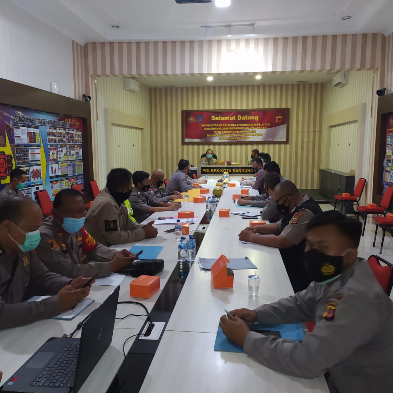 Puslitbang.Polri.go.id - Bid Rikwastu Pusat Penelitian dan Pengembangan Polri melaksanakan penelitian "Evaluasi Standar dan Kelayakan Mako Bangunan Mako Polsek dalam Rangka Pelayanan Prima Polri" di Polresta Bandung yang dipimpin Kombes Pol. Darmawan Sunarko, S.I.K., Rabu (17/2).Penelitian ini dilaksanakan dalam rangka memenuhi unsur kenyamanan sarana dan prasarana agar pelayanan prima dapat dilakukan secara optimal. Mako Polsek menjadi perhatian karena sebagai garda terdepan pelayanan Polri yang bisa menjadi cerminan layanan Polri secara keseluruhan.