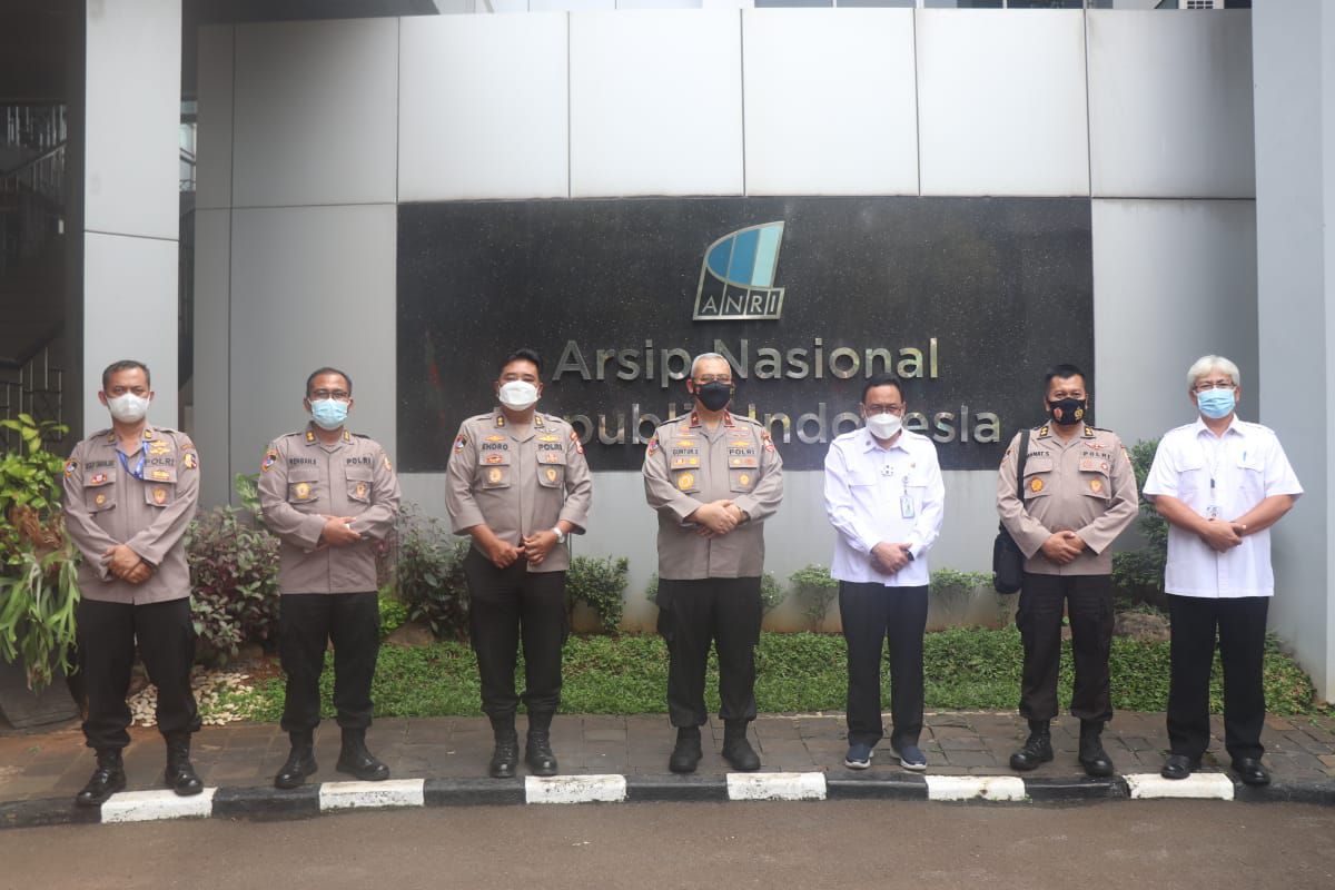 Kehadiran Kapuslitbang Polri beserta 5 (Lima) staf Puslitbang Polri di Kantor Arsip Nasional Republik Indonesia (ANRI) dalam rangka kunjungan kerja. Pada kunjungan ini Puslitbang Polri menjalin koordinasi kriteria, mekanisme dan persyaratan pengarsipan di Arsip Nasional dan mengenai dokumentasi arsip Polri untuk disimpan di Arsip Nasional.