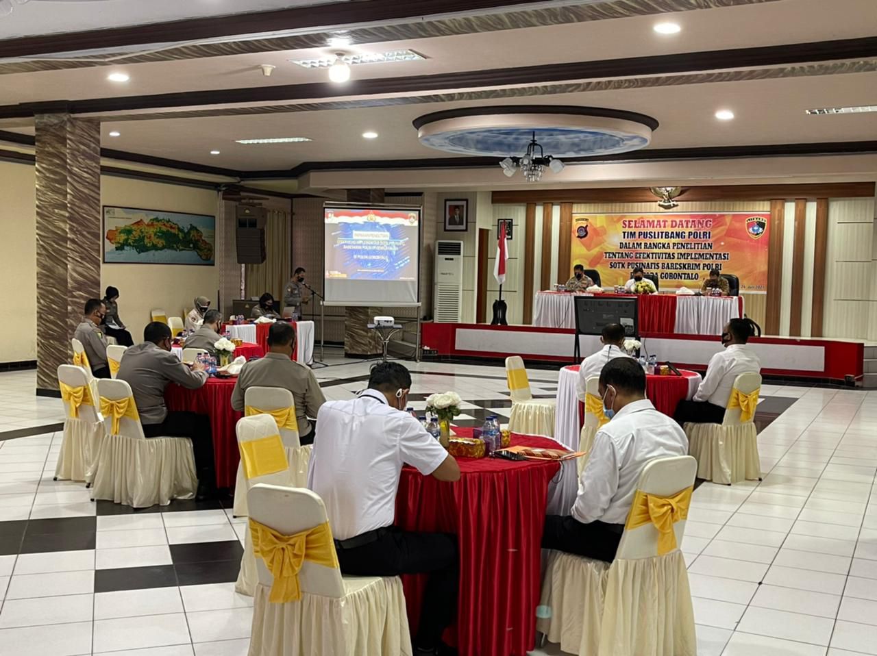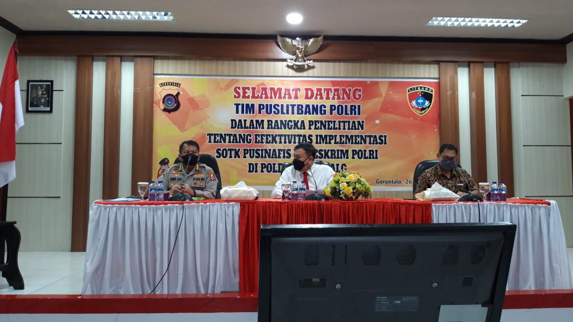 PUSLITBANG POLRI LAKSANAKAN PENELITIAN EFEKTIVITAS IMPLEMENTASI SOTK PUSINAFIS BARESKRIM POLRI DI POLDA GORONTALO