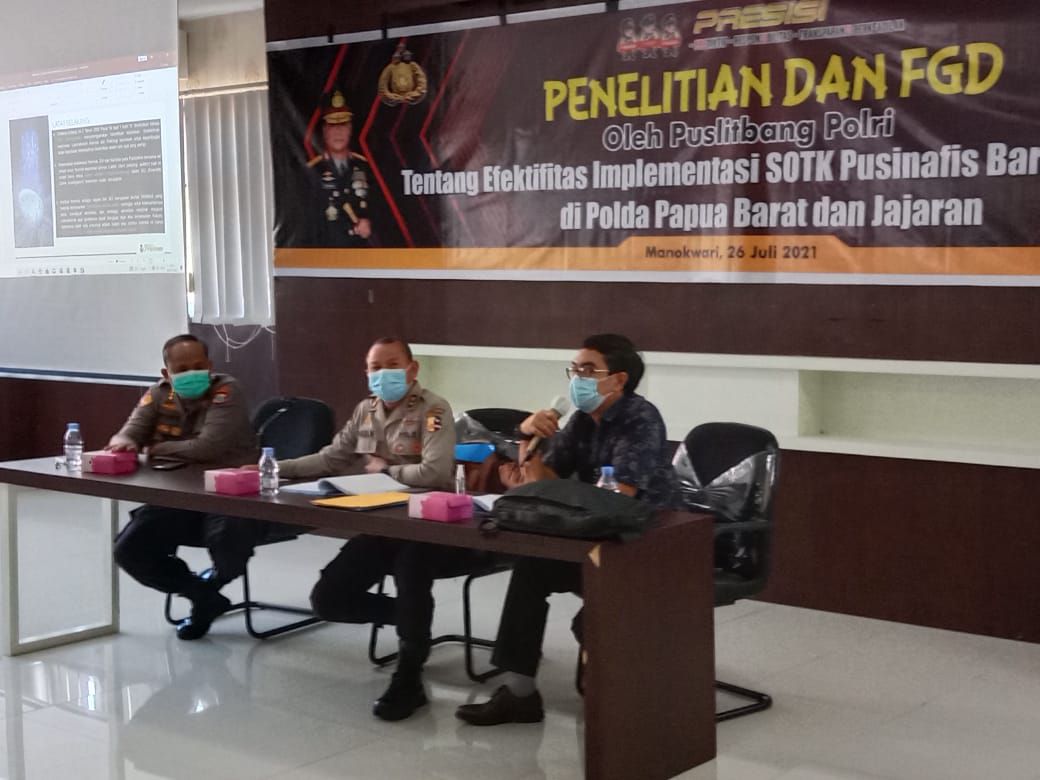 PUSLITBANG POLRI LAKSANAKAN PENELITIAN EFEKTIVITAS IMPLEMENTASI SOTK PUSINAFIS BARESKRIM POLRI DI POLDA PAPUA BARAT