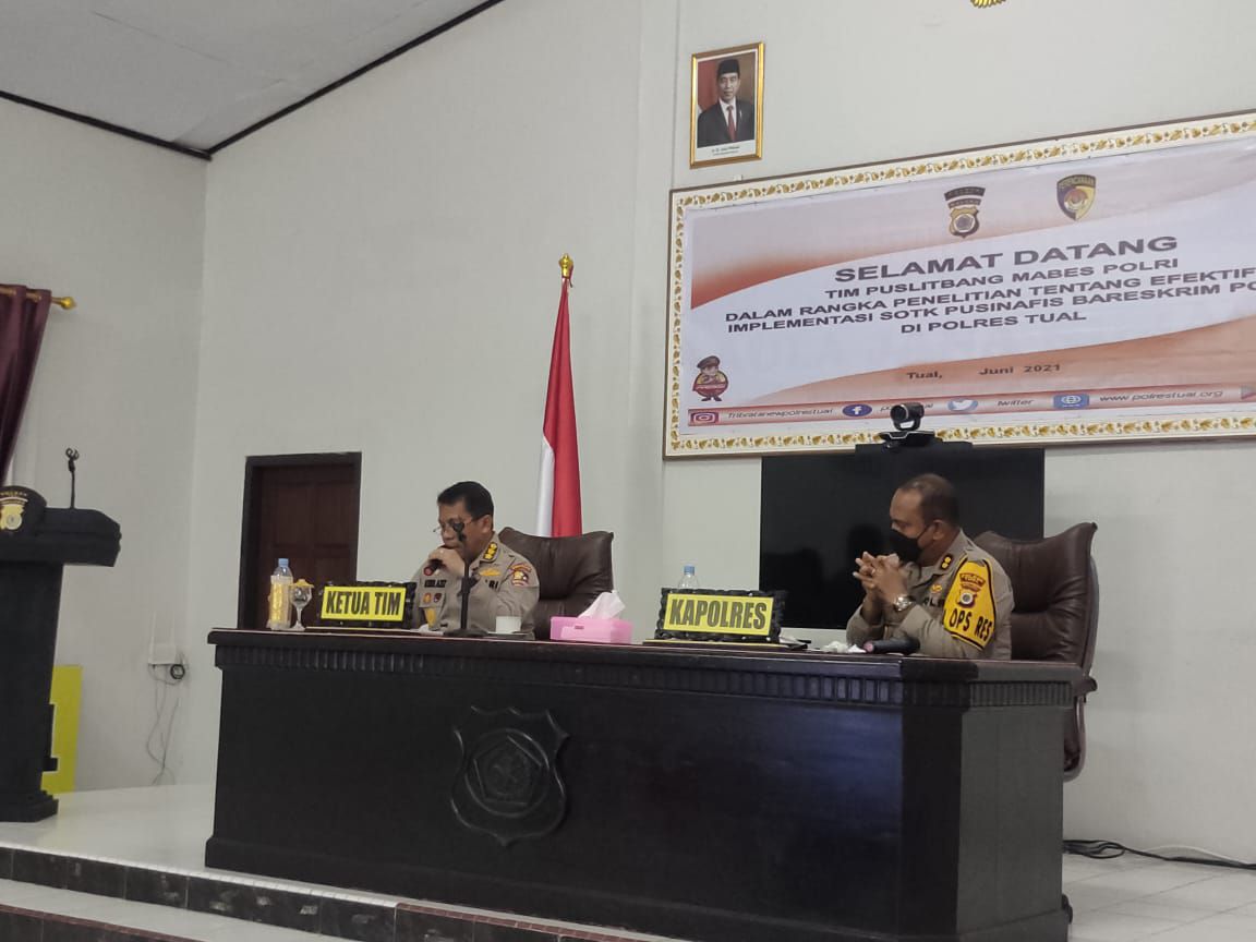 PUSLITBANG POLRI LAKSANAKAN PENELITIAN EFEKTIVITAS IMPLEMENTASI SOTK PUSINAFIS BARESKRIM POLRI DI POLRES TUAL