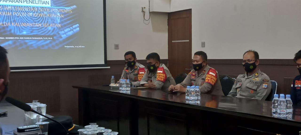 Puslitbang.Polri.go.id - Bid Gasbin Pusat Penelitian dan Pengembangan Polri melaksanakan penelitian "Efektivitas implementasi sistem organisasi tata kerja (SOTK) Pusinafis Bareskrim Polri" di Wilayah Polres Tapin yang dipimpin Kombes Pol. Ade Djadja Subagdja, Rabu (14/7).