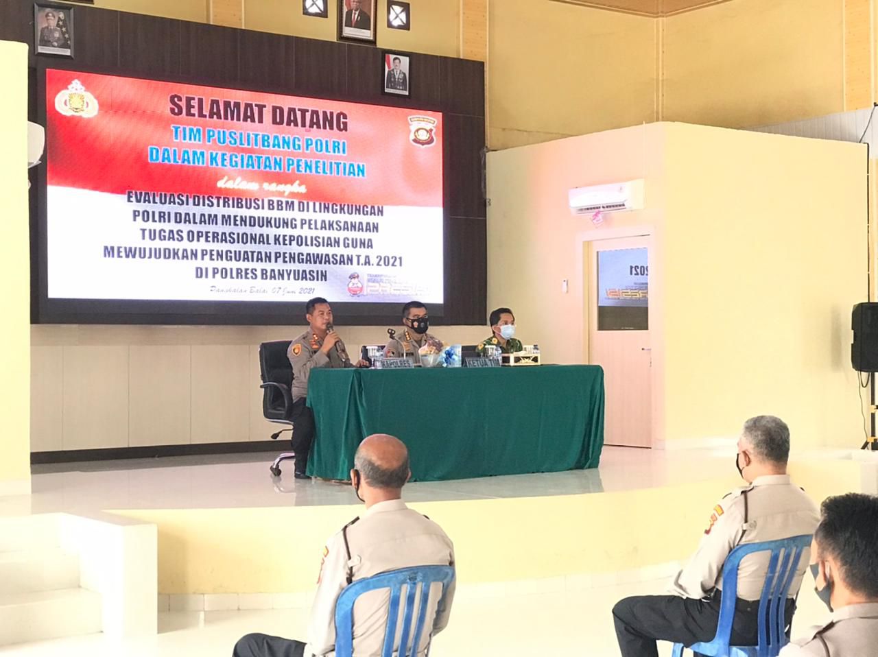 Puslitbang.Polri.go.i - Bid Rikwastu Pusat Penelitian dan Pengembangan Polri melaksanakan penelitian "Evaluasi distribusi BBM di lingkungan Polri dalam mendukung pelaksanaan tugas operasional kepolisian guna mewujudkan penguatan pengawasan" di Wilayah Polres Banyuasin yang dipimpin Kabidrikwastu Kombes Pol. Harvin Raslin, S.H., Senin (7/6).