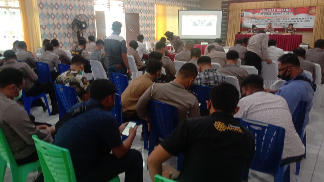 Puslitbang.Polri.go.i - Bid Rikwastu Pusat Penelitian dan Pengembangan Polri melaksanakan penelitian "Evaluasi distribusi BBM di lingkungan Polri dalam mendukung pelaksanaan tugas operasional kepolisian guna mewujudkan penguatan pengawasan" di Wilayah Polda Sumatera Barat yang dipimpin Kombes Pol. Syahrial M. Said, S.I.K., Selasa (8/6).