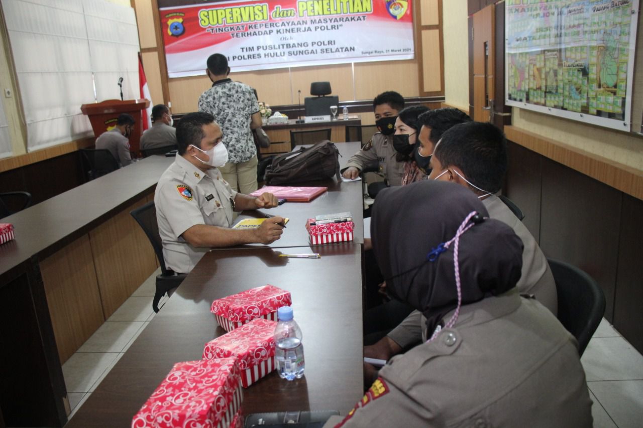 PUSLITBANG POLRI LAKSANAKAN PENELITIAN TINGKAT KEPERCAYAAN MASYARAKAT DI POLRES HULU SUNGAI SELATAN