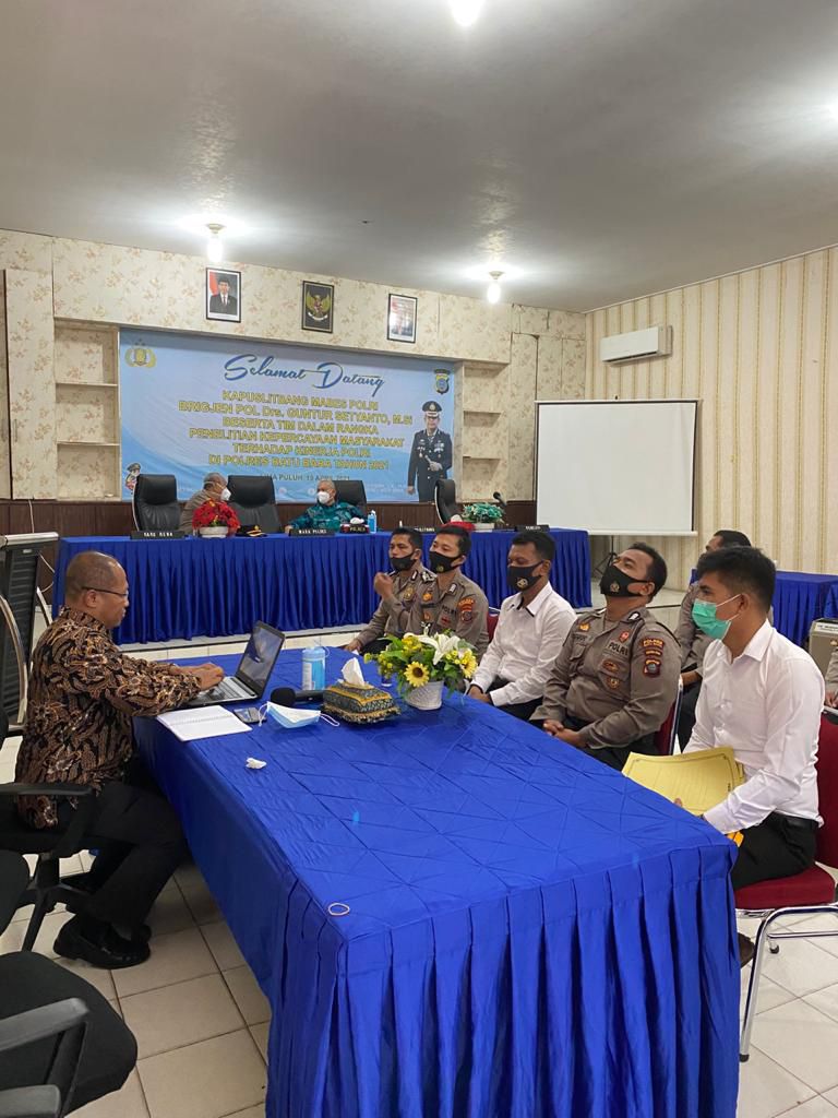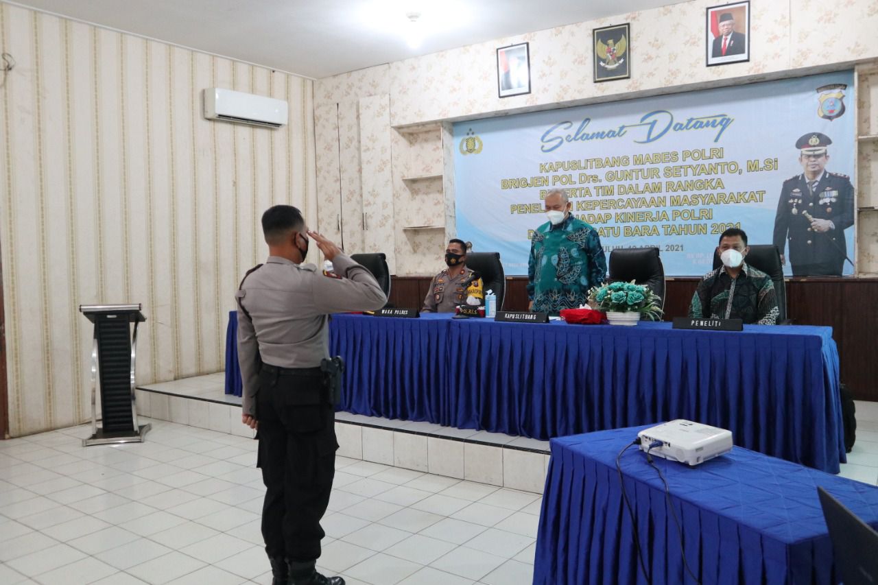 Puslitbang.Polri.go.id - Bid Gasopsnal Pusat Penelitian dan Pengembangan Polri melaksanakan penelitian "Tingkat Kepercayaan Masyarakat Terhadap Kinerja Polri" di Polres Batubara yang dipimpin Kabidgasopsnal Kombes Pol. Drs. Azis Saputra dan disupervisi Kapuslitbang Brigjen Pol. Drs. Guntur Setyanto, M.Si., Senin (19/4).