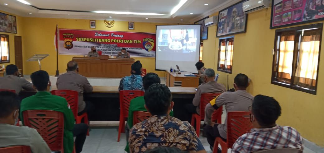 Puslitbang.Polri.go.id - Bid Gasopsnal Pusat Penelitian dan Pengembangan Polri melaksanakan penelitian "Tingkat Kepercayaan Masyarakat Terhadap Kinerja Polri" di Polres Tanjung Jabung Timur yang dipimpin Kombes Pol. Saefudin Mohamad, S.I.K. dan disupervisi Sespuslitbang Polri Kombes Pol. Drs. Iswyoto Agoeng Lesmana Doeta, M.Si., Kamis (27/5).