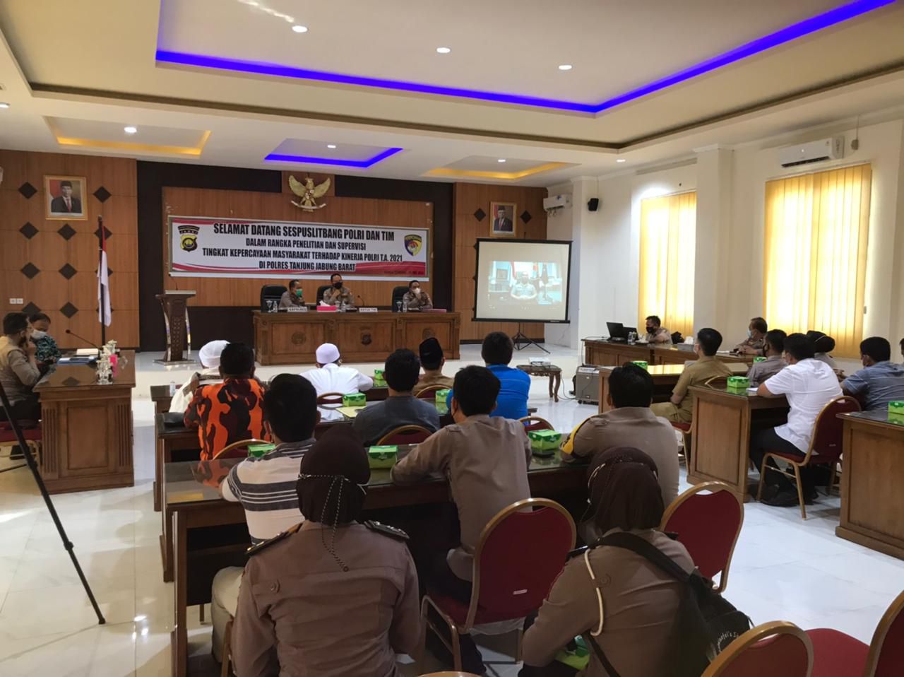 Puslitbang.Polri.go.id - Bid Gasopsnal Pusat Penelitian dan Pengembangan Polri melaksanakan penelitian "Tingkat Kepercayaan Masyarakat Terhadap Kinerja Polri" di Polres Tanjung Jabung Barat yang dipimpin Kombes Pol. Saefudin Mohamad, S.I.K. dan disupervisi Sespuslitbang Polri Kombes Pol. Drs. Iswyoto Agoeng Lesmana Doeta, M.Si., Selasa (25/5).