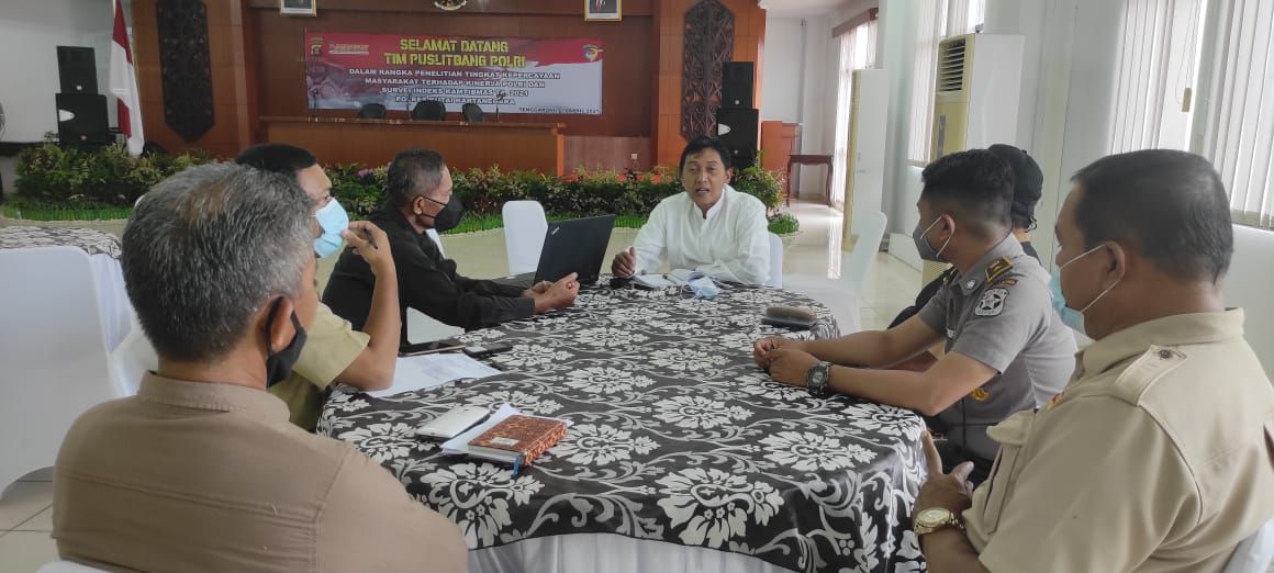 Puslitbang.Polri.go.id - Bid Gasopsnal Pusat Penelitian dan Pengembangan Polri melaksanakan penelitian "Tingkat Kepercayaan Masyarakat Terhadap Kinerja Polri" di Polres Kutai Kertanagara yang dipimpin Kabidgasopsnal Kombes Pol. Drs. Azis Saputra, Selasa (13/4).