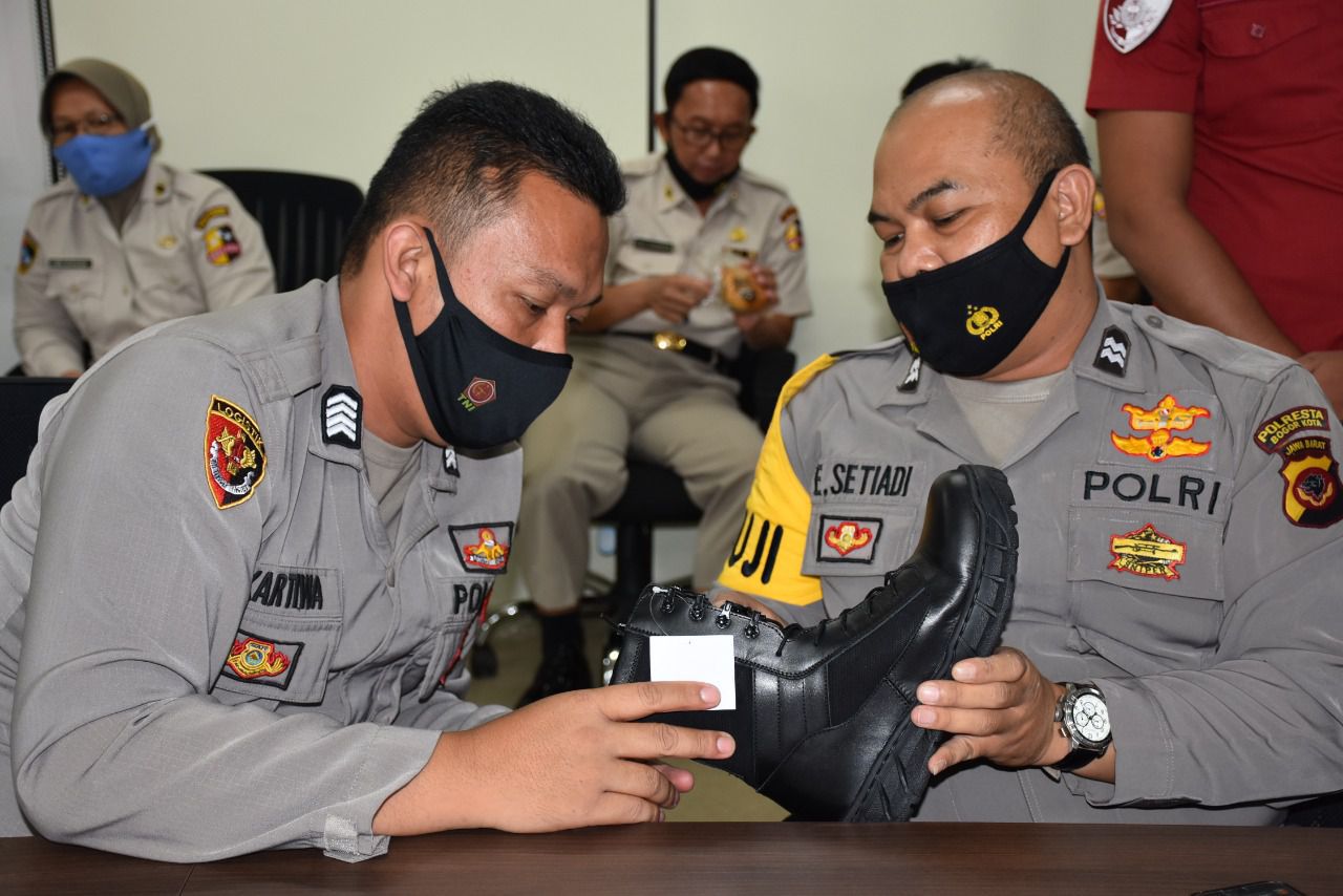 Puslitbang.Polri.go.id - Bag Labtekpol Pusat Penelitian dan Pengembangan Polri melaksanakan Presentasi, Demonstrasi, dan Uji coba sepatu olahraga, PDL, PDH Wanita, Resintel Pria dan Anklebooth yang dipimpin Kabaglabtekpol Kombes Pol. Drs. Pratikno, M.M., Selasa (2/3).